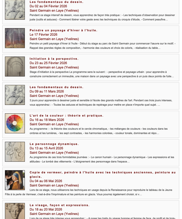 Je propose des stages de quelques jours en début de vacances scolaires et des cours particuliers à destination des élèves désirant tenter les concours d'entrée en école d'art.